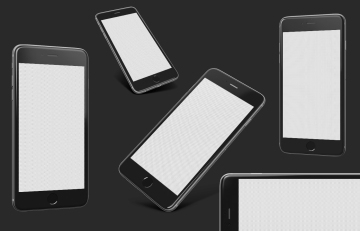 Photoshop PSD格式的5个iPhone 6 +空间灰色实体模型,带有简单的屏幕替换智能对象,只需拖放,就可以开始了!漂亮的阴影和色彩背景会让你的作品看起来很酷。