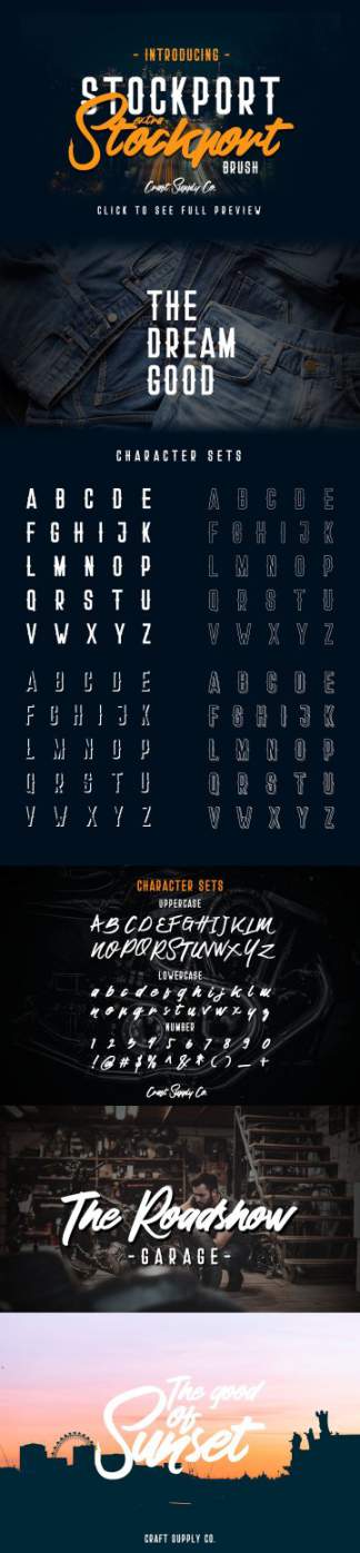 Stockport Extra & Brush is suitable for Logo, greeting cards, quotes, posters, branding, name card, stationary, design title, blog header, art quote, typography art, modern envelope lettering or book design.