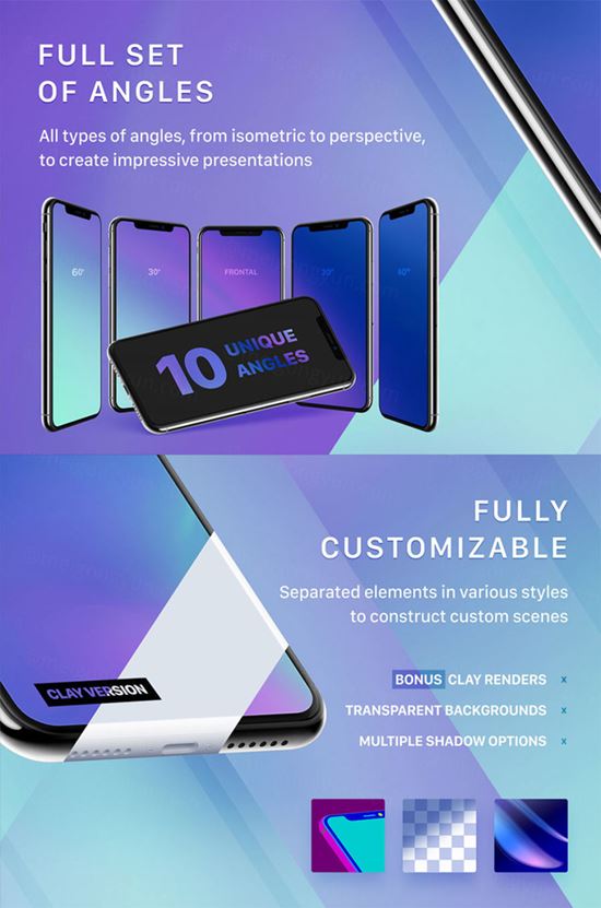 iPhoneX多角度展示贴图模型Mockups