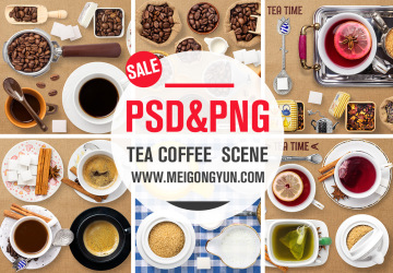 图穷联素材库 » 咖啡茶场景PSD分层素材包 Coffee tea scene