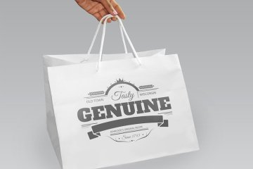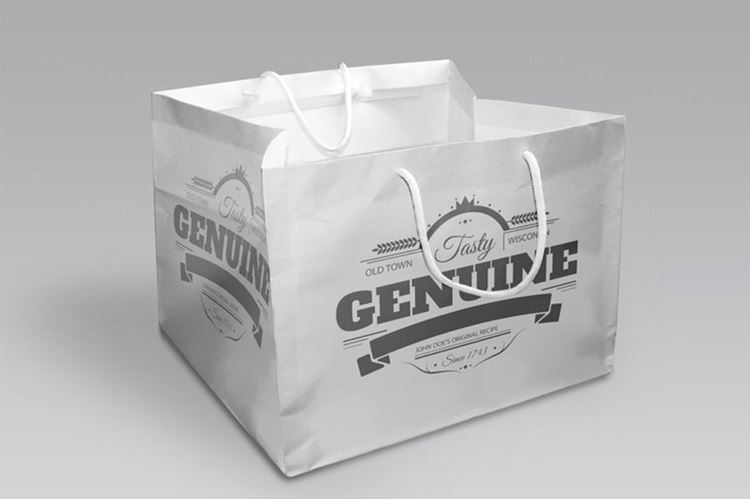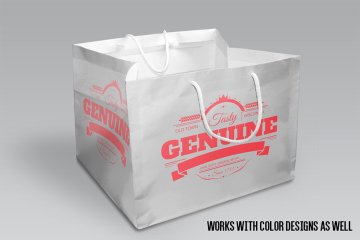 Photo realistic shopping bag mock-ups. 4x views in each color. 8x files total. Features: