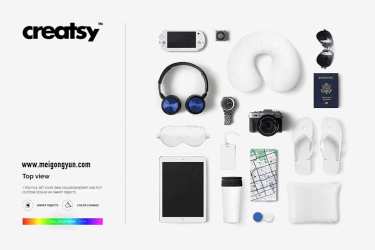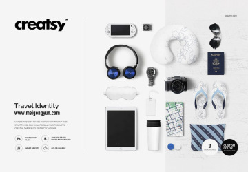 图穷联素材库 » 旅行套装平铺贴图样机-Travel-Mockups