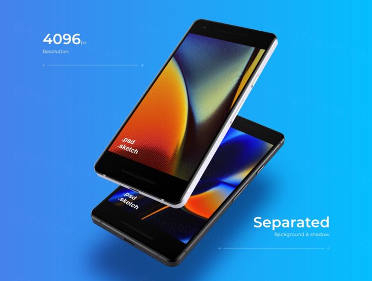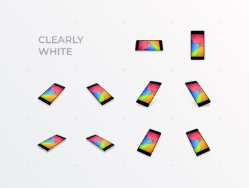 Routinely, the set includes highest standard quality mockups with technical precision and photorealistic effects, conveniently packed in Photoshop and Sketch files. Colors include Clearly White, Kinda Blue, Just Black, for a total of 10 Google Pixel 2 mockups.