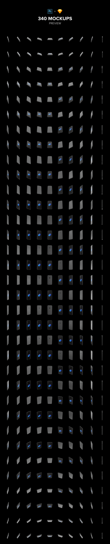 340 iPhone 7 Black high resolution mockups with every angle, every technical detail, and feature are included into the mockup. Great quality and realistic effects. This set of mockups include 340 Photoshop, Sketch and PNG files.