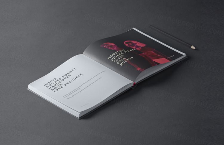翻开的精装书籍设计展示贴图模版 Square Psd Hardcover Book Mockup