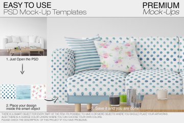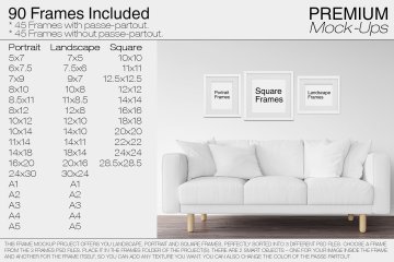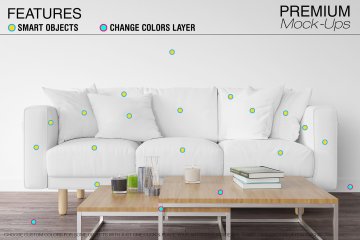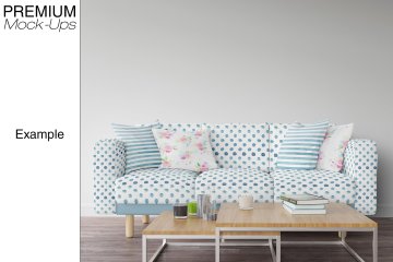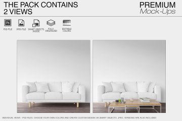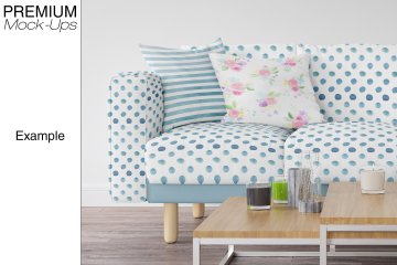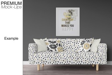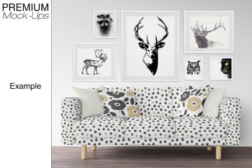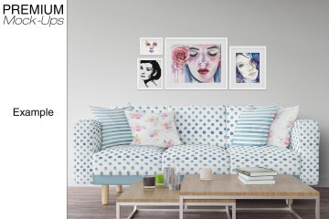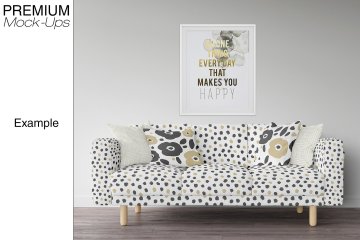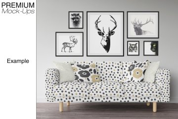 图穷联素材库 » 沙发和相框场景展示样机 Sofa , Pillows Frames Mockup Pack