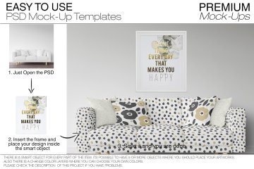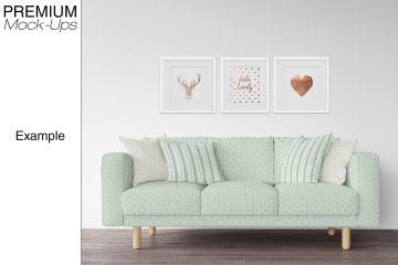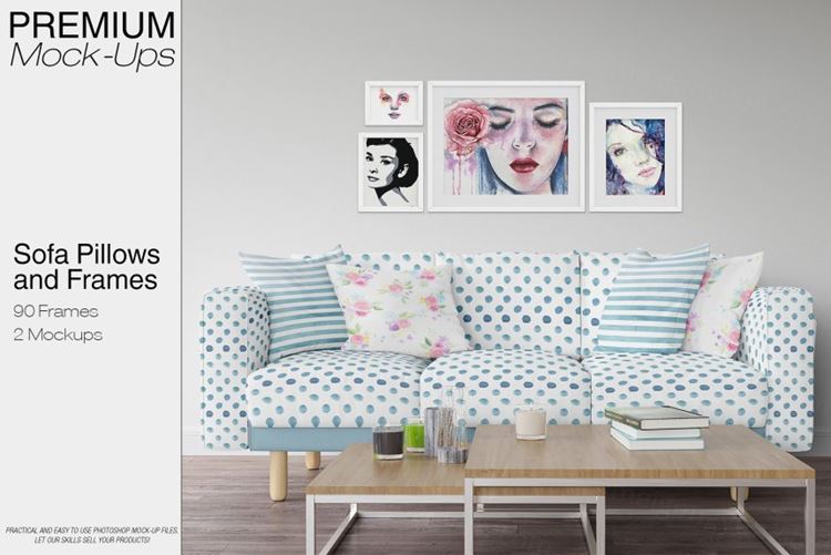 沙发和相框场景展示样机 Sofa , Pillows Frames Mockup Pack