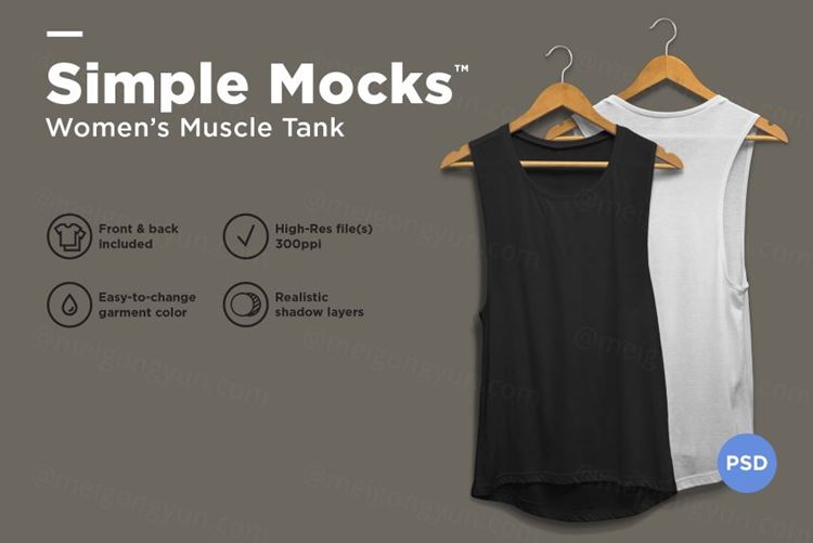 图穷联素材库 » 女士背心贴图展示样机PSD模版 Women\'s Muscle Tank Mockup