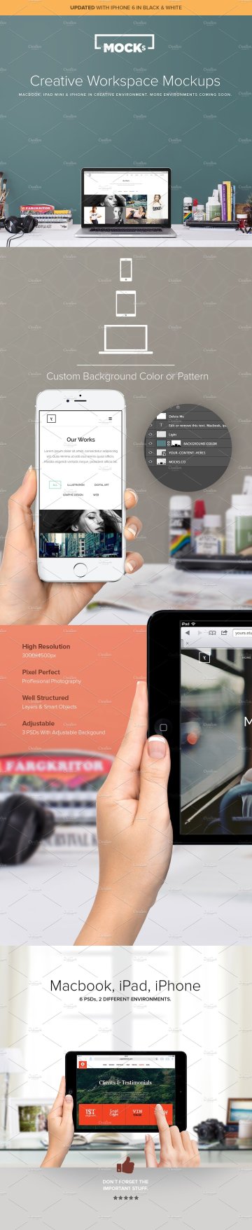 6高质量的Macbook,iPad和iPhone 5/6实物模型以专业的方式显示您的网站,应用程序或响应式网站。或者为什么不把它用作你的新投资组合网站的整页滑动?