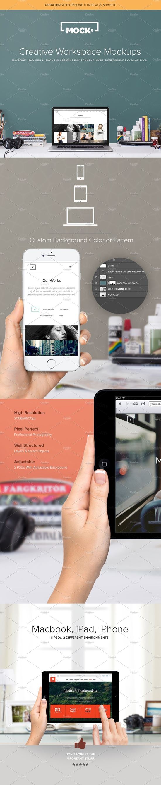 全新的真实手持苹果全设备展示模型一套 Macbook , iPad iPhone Mockups