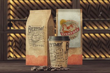 图穷联素材库 » 一套咖啡快餐外卖店饮料杯VI贴图展示样机模版 Set of Coffee MockUps
