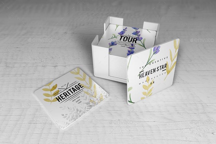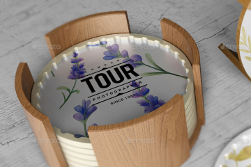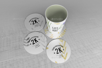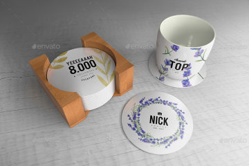 图穷联素材库 » 精美的酒吧家居酒杯/咖啡杯垫设计样机品牌提案素材 Coaster Mockups V2