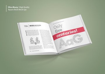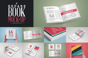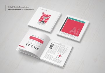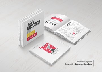 图穷联素材库 » 方形精装书设计展示样机模型 Square Book Mock-Up Set