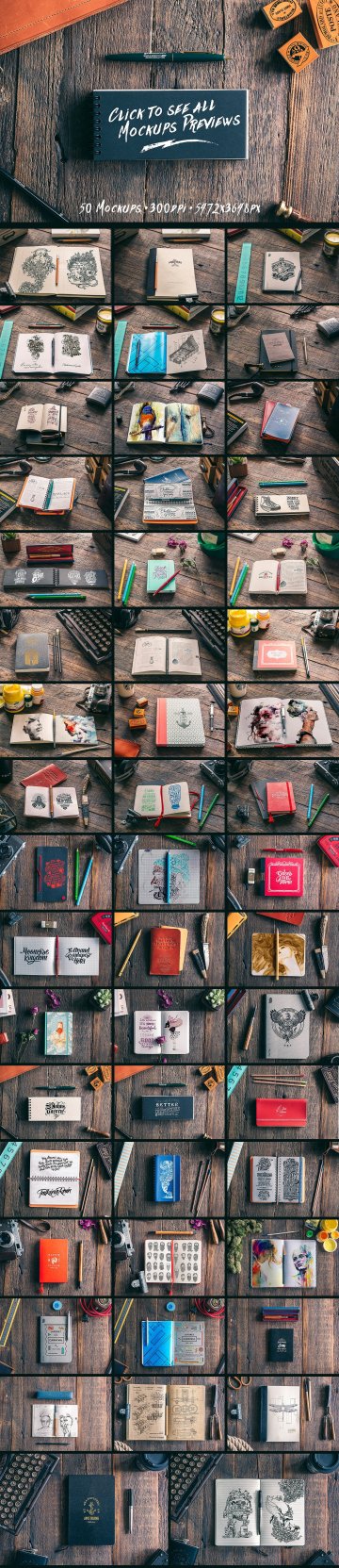 50款记事本绘画本样机模板 50 Notebooks Mockups