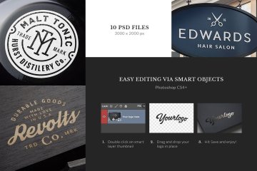 徽标/徽章模拟系列的第四卷为您带来一组新的10个PSD文件,您可以用它们来展示您的徽标,徽章,徽章,标签,会标,字母等。智能对象使您可以轻松添加自己的徽标并立即创建简洁的演示文稿。