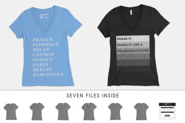 这组Photoshop模板包包括6个逼真的深V短袖T恤模板,以及一个详细的教程。4K文件确保你的设计在经过裁剪和放大后在显示器上看起来依然很棒。
