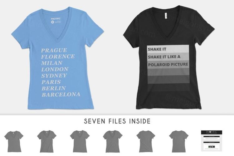 图穷联素材库 » 深V短袖T恤样机模板 Bella Canvas 6035 Deep-V Mockups