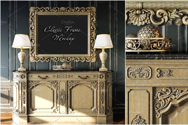 图穷联素材库 » 经典室内画框样机模板 Classic Interior Frame Mockup01
