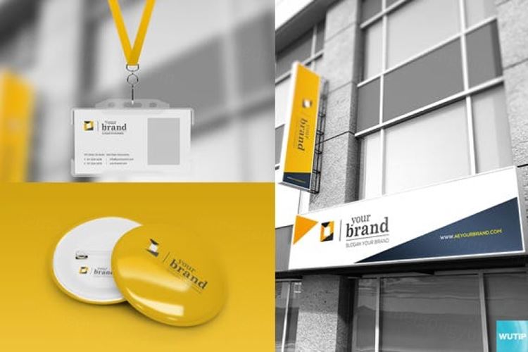 图穷联素材库 » 高品质的多用途时尚品牌设计门头设计VI样机展示模型mockups