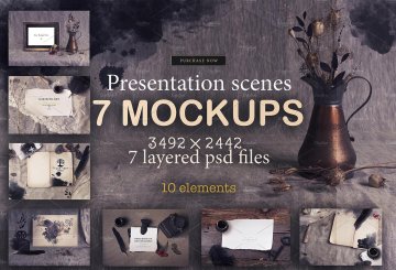 7个质朴的模拟场景分层PSD每张照片在个人的图层上都有不同的对象。