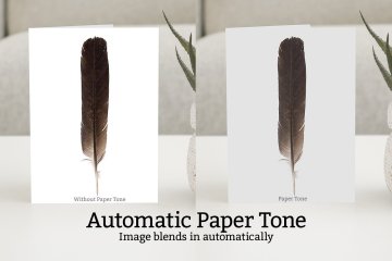 启用“纸张色调”图层可自动混合您的设计,以增加真实感。