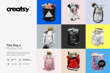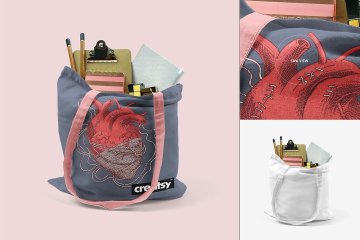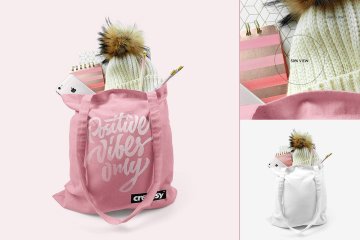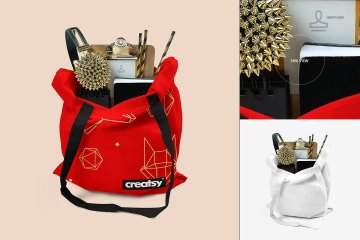 图穷联素材库 » 手提袋帆布袋特色模型贴图样机素材 Tote Bag 2 Mockup Set