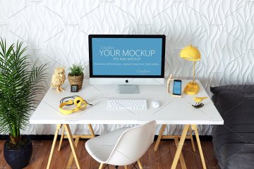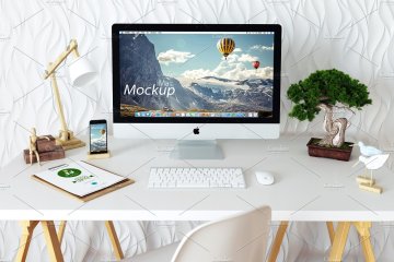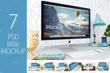 苹果一体机桌面显示样机模板 iMac Mockup (7 PSD) + Bonus