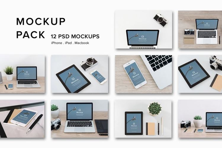 图穷联素材库 » 12款苹果笔记本平板样机模板 Mockup Pack – 12 PSDs