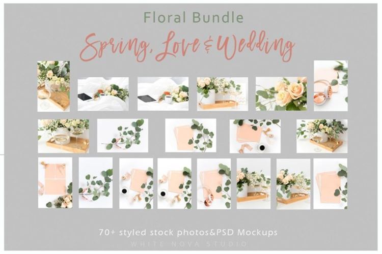 春天主题婚礼花卉背景贴图样机 Floral Bundle: Spring Love Wedding