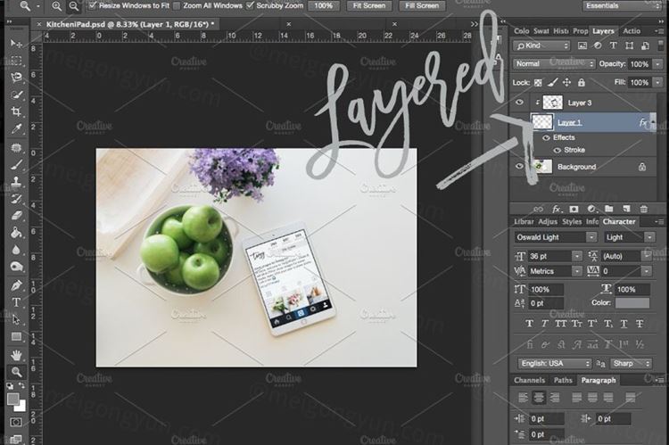 图穷联素材库 » 厨房场景平板电脑样机模板 PSD included