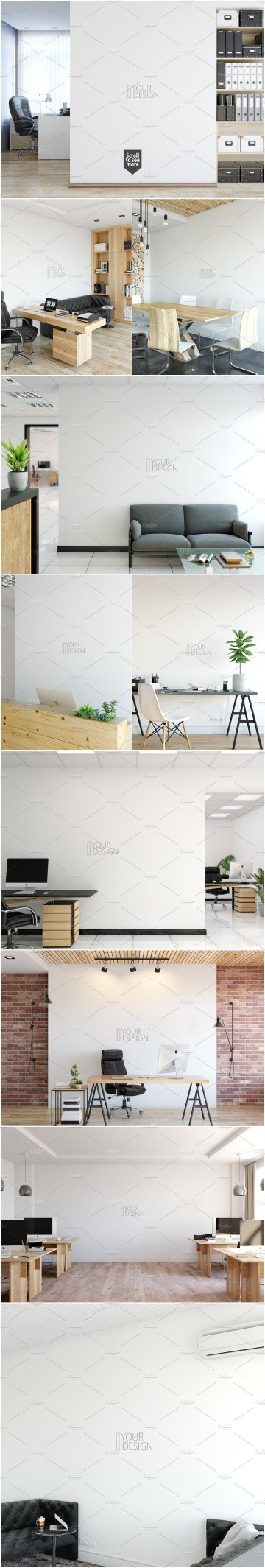 办公室墙纸设计样机模板素材 OFFICE Interior Wall Mockup Bundle