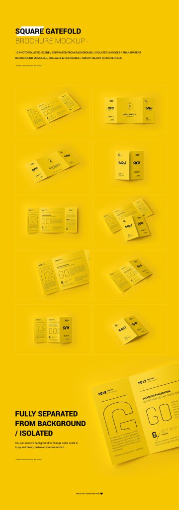 图穷联素材库 » 三折页宣传小册子展示样机模板Square Gatefold Brochure Mockup