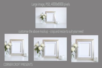 7个高分辨率相框,jpg,300 dpi,4000“x6000”和带智能物体的psd文件; 1风格的股票照片,JPG。