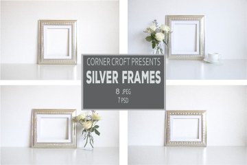 银色金属画框相框样机 Silver Frame Product Mockup Bundle