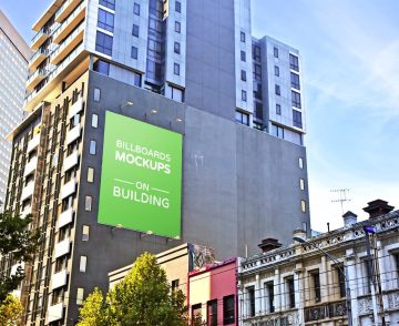 建筑物的广告牌样机展示模型mockups,你将得到一个干净的显示最大的模板,让你做更多的细节到你的设计。在Photoshop中使用智能对象工作,只需要几秒钟,让您的设计看起来逼真。