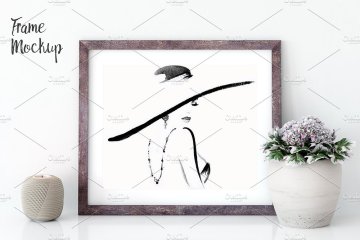 图穷联素材库 » 实木框画框样机 Frame mockup in white – 1 (10×8)