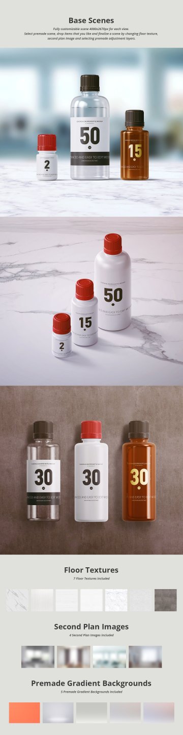 不同材质的滴瓶展示模型 Dropper Bottles Mock-up