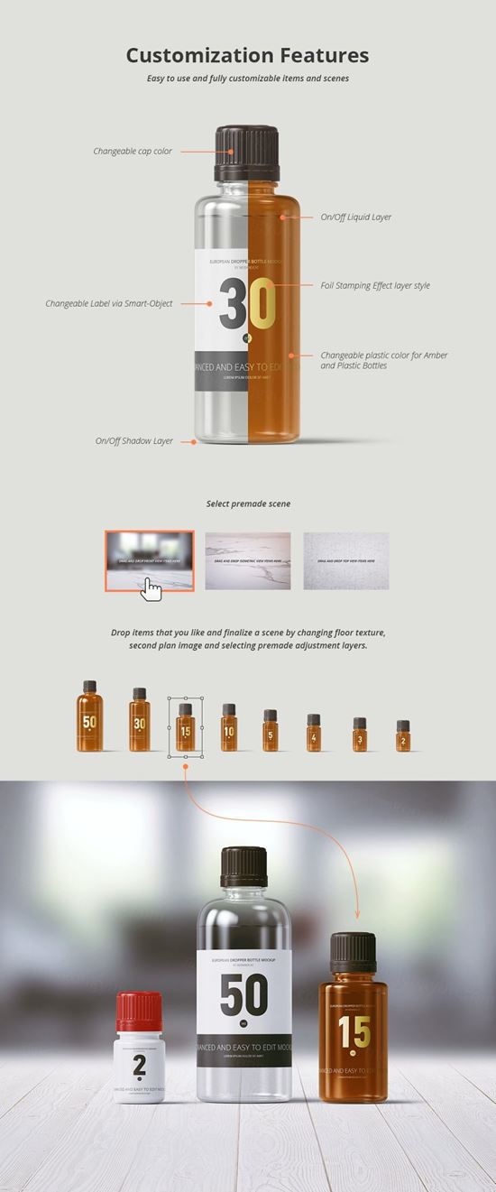 图穷联素材库 » 不同材质的滴瓶展示模型 Dropper Bottles Mock-up