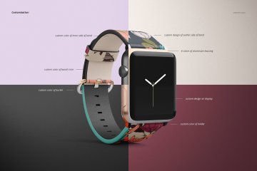 图穷联素材库 » 高品质的Apple Watch表带展示模型Apple Watch Leather Band Mockup Set