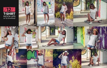 时尚女性T恤样机模板T-Shirt Mock-Up