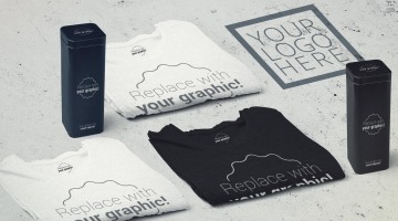 图穷联素材库 » T恤和包装场景样机模板素材 T-shirt and Packages Scene Generator – Perspective...