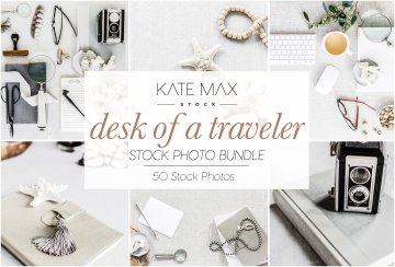 现代/干净和女性化品牌场景样机模板 Desk of a Traveler Stock Photo Bundl