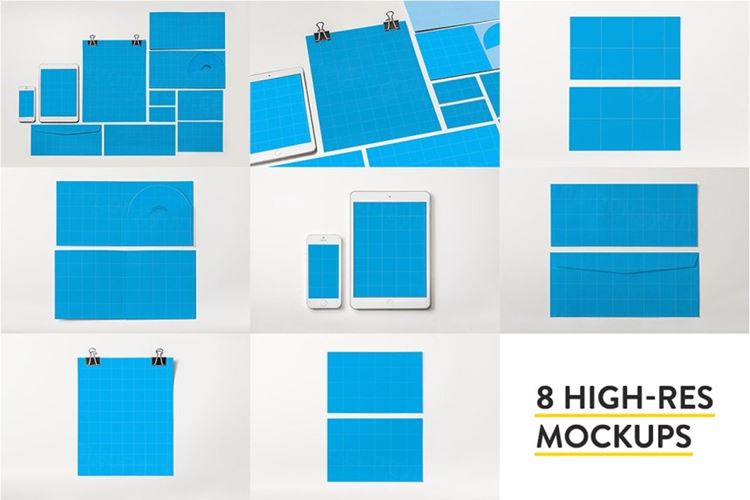 图穷联素材库 » 8个简约品牌VI样机模板 8 Clean Identity Branding Mockups
