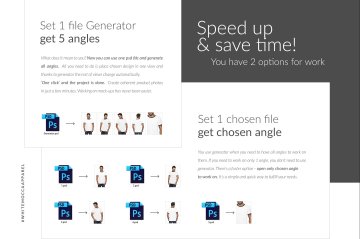 这对您意味着什么?现在您可以使用一个psd文件并生成所有角度。您需要做的就是将选定的设计放在一个视图中,并且由于生成器,其余视图会自动更改。“点击一下”,项目就完成了。只需几分钟即可创建连贯的产品照片。在模型上工作从未如此简单。