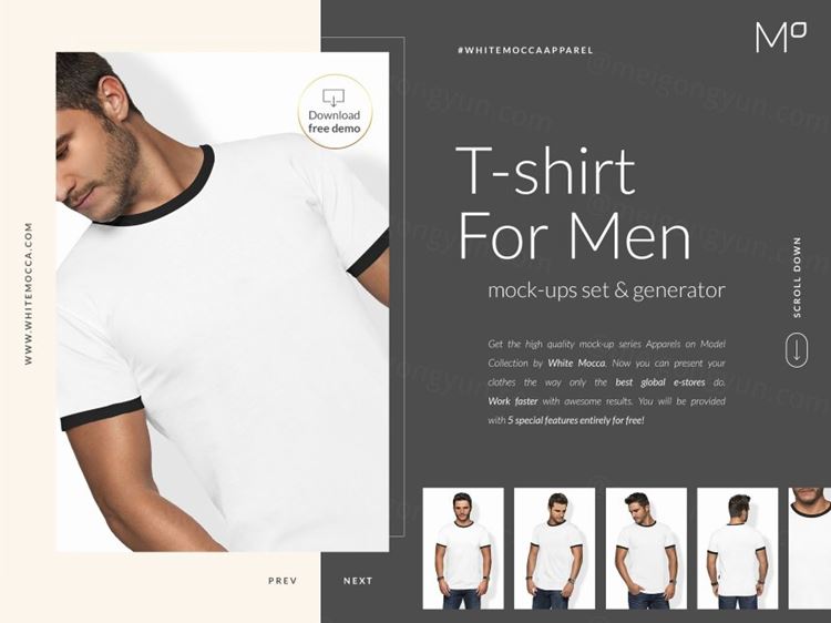 图穷联素材库 » 时尚简约男士T恤样机Men T-shirt Mockups Set