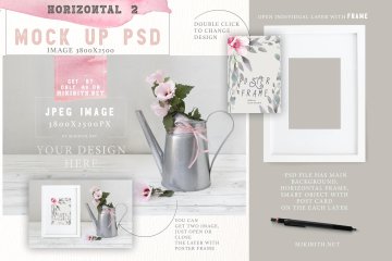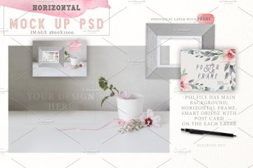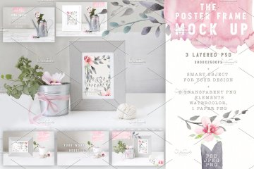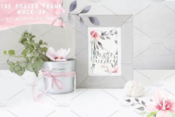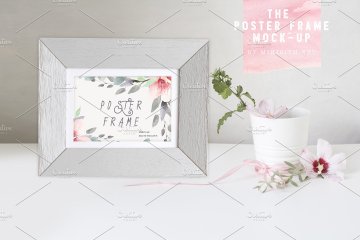 海报画报框样机 Minimal-wooden-pink-frame-mock-up