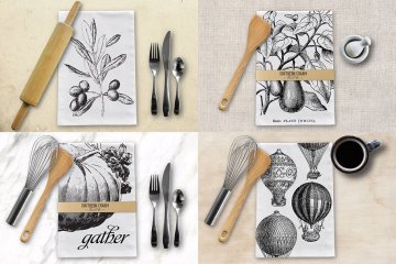 这款psd样机配有茶/晚餐/面粉袋毛巾,您可以通过Smart Objects轻松添加您的设计。psd文件的尺寸为3000 x 2000像素,还包括其他项目,如木勺,打蛋器,擀面杖,咖啡杯,银器,研钵和杵,以及牛皮纸腹带。毛巾和腹带都使用Photoshop中的智能对象来添加设计。您还可以选择8种不同的背景,包括大理石,亚麻布,染色织物,碎漆,暖木,黑金属,木板条和复古纸。