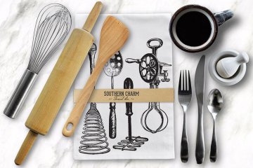 图穷联素材库 » 创意茶巾样机模板 Tea Dish Towel Mockup