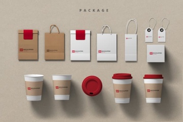 包装(袋子,徽章,盒子,纸咖啡杯)