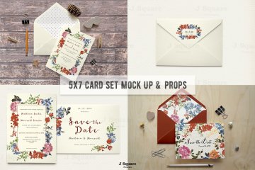 图穷联素材库 » 经典贺卡信封样机模板 Organic-Styled 5×7 Card Set Mock Ups